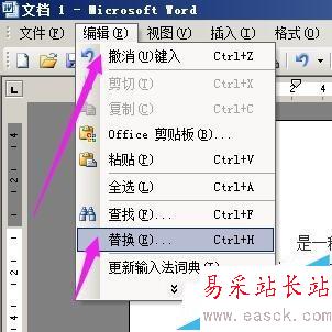 1、以圖中的文檔為例。文檔中有兩段落,兩段落間多了一行空白行。如果是一兩處的話用手動來調就可以;如果這種情況在一整篇文檔中出現很多的話, 手動操作就麻煩了。現在以兩個段落間隔來演示操作方法。在文檔的上方菜單欄中,順序點:編輯--替換;也可以用快捷鍵的,按鍵盤的CTRL+H鍵;