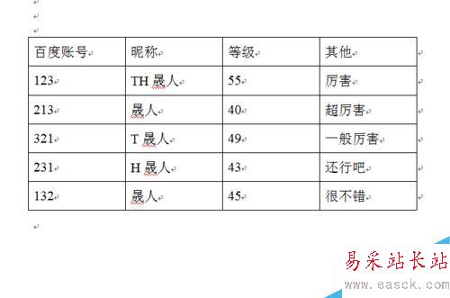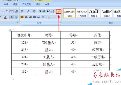 6、使用隱藏段落符號的工具,可以把表格中分段的段落符號的箭頭給去掉,當然不去掉也可以,我就是精益求精。