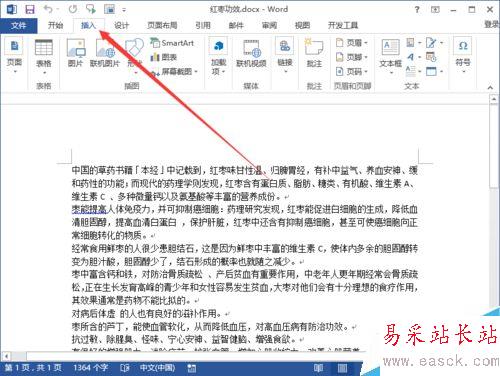 二、在打開的Word文檔窗口中,打開“插入”菜單選項卡。如圖所示;
