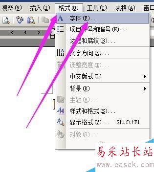在文檔輸入“B”字后,在文檔上方的菜單欄中,順序點:格式--字體。