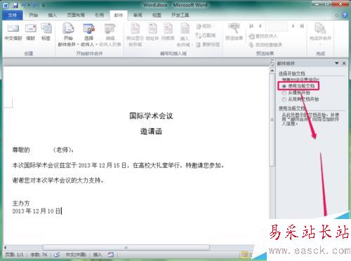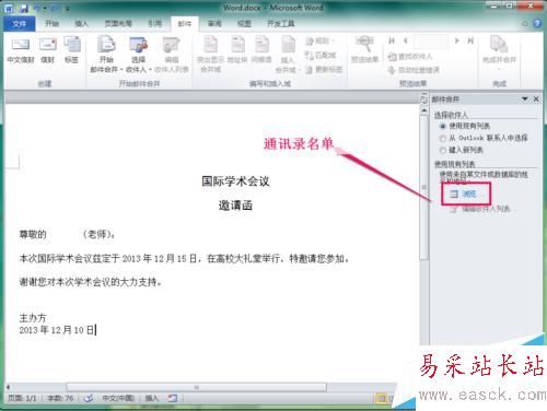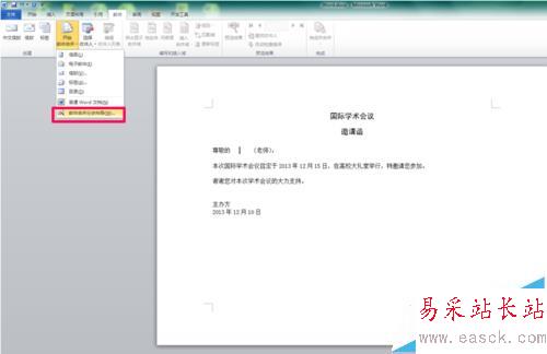 3、我們選擇開始郵件合并中的郵件合并分步向導 如圖