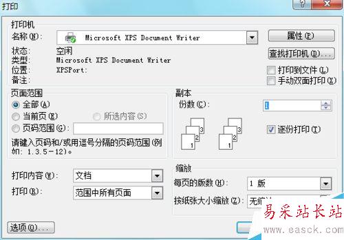 4、點(diǎn)擊打印選項(xiàng)后,彈出打印設(shè)置對(duì)話框,如圖所示: