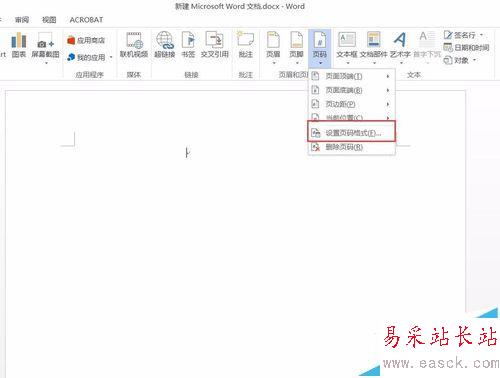 3、點(diǎn)擊【頁眉和頁腳】組中的【頁碼】,點(diǎn)擊【設(shè)置頁碼格式】,彈出【頁碼格式】對(duì)話框。