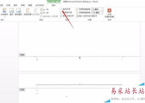 6、此時(shí)跳出如下界面,勾選【設(shè)計(jì)】選項(xiàng)卡中的【首頁不同】。