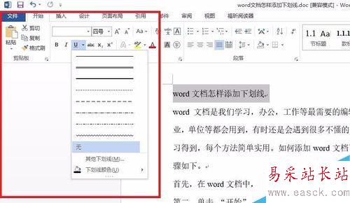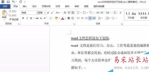 以上就是在word文檔中如何給文字添加下劃線方法介紹,操作很簡單的,大家學會了嗎?希望這篇文章能對大家有一定的幫助!