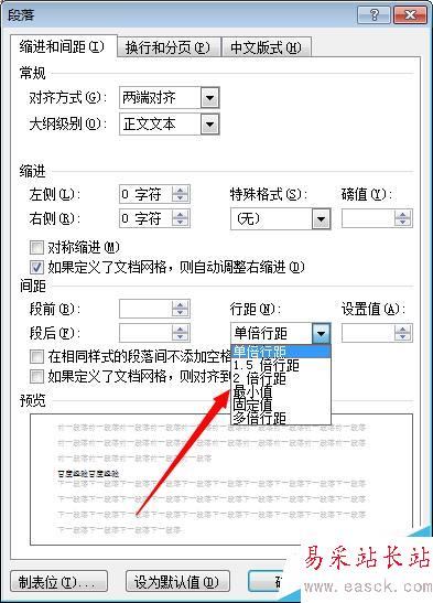3、然后再設(shè)置需要的文字行間距,單倍間距或1.5倍間距都可以了。