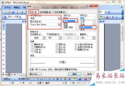 2、配置字體:將字體配置成合適的字體,比如我選擇“小四”的字體,然后“確定”;這個字體要根據自己文檔的要求或是需求來修改,不一定都是小四號字體;