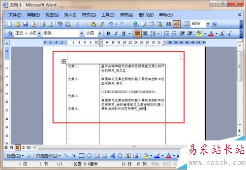 3、查看結果:這一步的目的是使得表格中的字體是統一的字體,為后邊的對齊打好基礎。