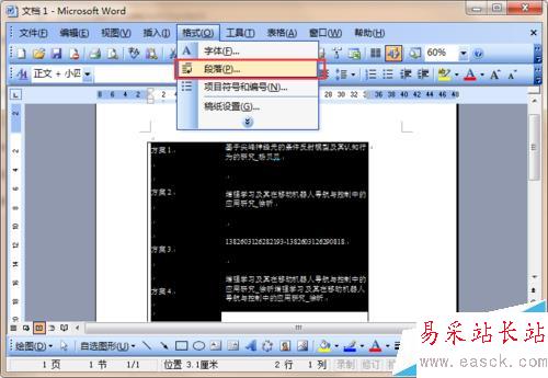 1、找到命令:點擊菜單欄中的“格式”,在下拉菜單中選中“段落”;