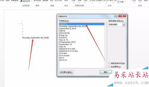 5、打開【日期和時間】對話框,選擇需要的時間和日期格式,點擊【確定】。