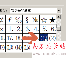5、鼠標雙擊符號窗口中需要的帶括號數字。即可打出該數字。然后關閉符號窗口。