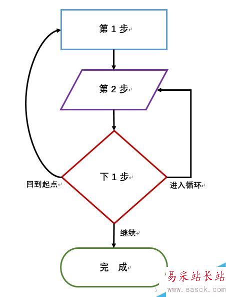 雙擊繪制好的形狀,即可直接在其中輸入文字。另外,也可以為每一形狀設置不同的色彩邊框等等。形狀繪制好之后,可以在“線條”中根據需要選擇不同的線條風格,將流程圖中關聯的部分連接起來,它們會在兩個形狀的節點之間自動連接。