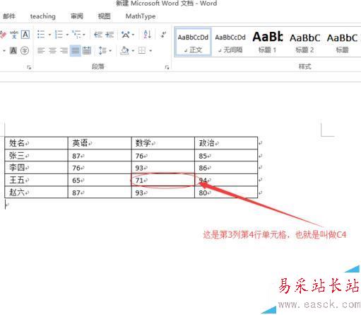 2、接著,要明確行列號。與excel一樣,表格中列號用A,B,C......表示,行號用1,2,3......表示,每一單元格為列、行的交叉。例如如圖所示。