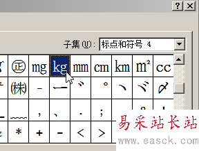 5、鼠標雙擊其中的“Kg”,就會輸入單字符的Kg符號。