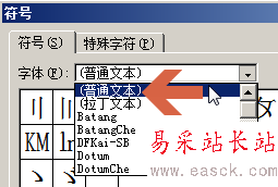 3、在符號窗口中字體處點選“普通文本”。