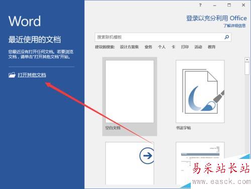 1、鼠標(biāo)左鍵雙擊計(jì)算機(jī)桌面Word2016程序圖標(biāo),將其打開(kāi)運(yùn)行。并點(diǎn)擊“打開(kāi)其他文檔”選項(xiàng)。打開(kāi)需要編輯的Word文檔。如圖所示;