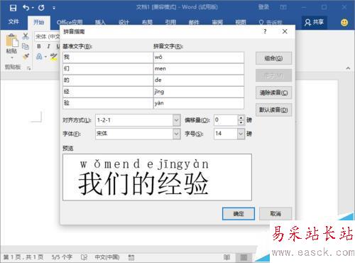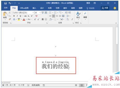 6、回到Word窗口,即可看到文字內(nèi)容添加拼音后的效果。如圖所示;