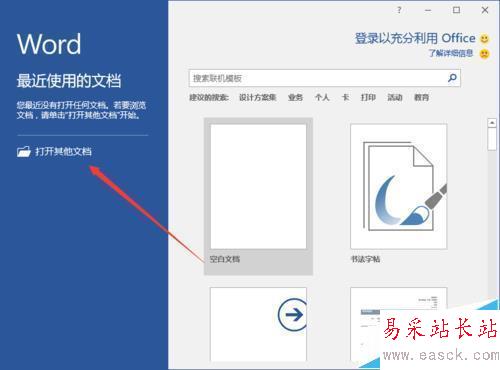 1、鼠標(biāo)左鍵雙擊計(jì)算機(jī)桌面Word2016程序圖標(biāo),將其打開運(yùn)行。并點(diǎn)擊“打開其他文檔”選項(xiàng)。打開需要編輯的Word文檔。如圖所示;