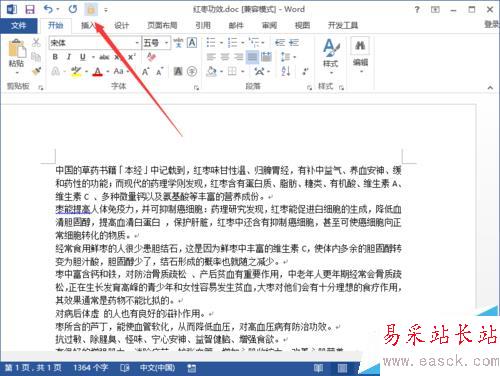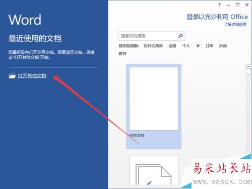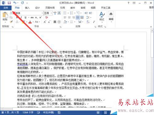2、在打開的Word2013文檔窗口中,點擊左上角的“文件”命令選項。如圖所示;