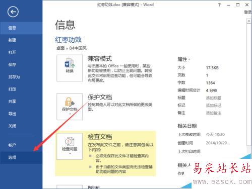 3、在彈出的“文件”命令選項對話框中,選擇并點擊“選項”命令選項。如圖所示;