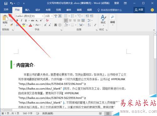 2、在打開的Word文檔窗口中,點擊左上角的“文件”選項按鈕。如圖所示;