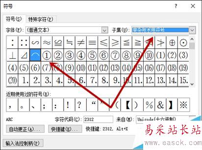 4、在出現的大括號內輸入:eq /o(AB,/s/up5(⌒)), ⌒在零雜技術符號里,見圖。