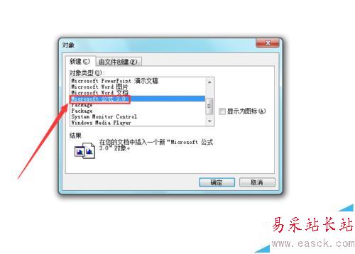 5、在對象對話框里找到“Microsoft 公式3.0”選項,如圖所示: