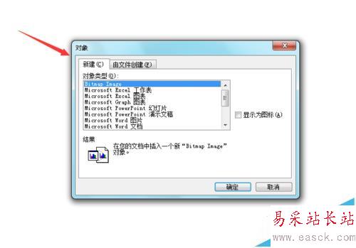 4、點擊“對象”選項后。彈出對象對話框,如圖所示: