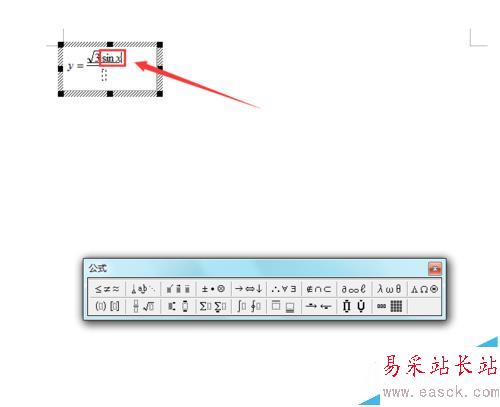 9、光標在開方里,我們輸入數(shù)字”3“,并將光標移出開方符號外,輸入”sinx“,分子就輸入完了,如圖所示: