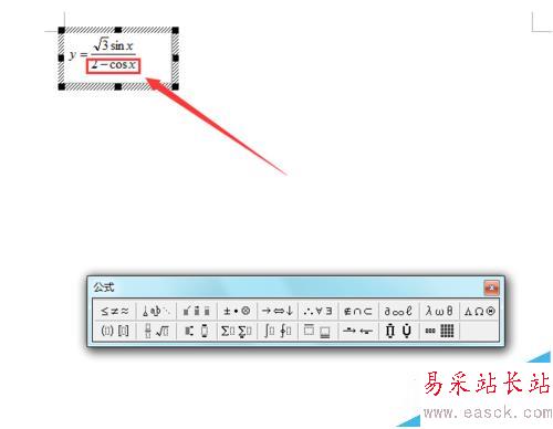 10、將光標指向分母上,輸入”2“,”-“,”cosx“,這樣就得到我們的運算式了,如圖所示: