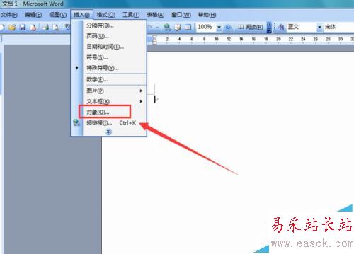 3、在插入菜單的下拉菜單里找到“對象選項”如圖所示: