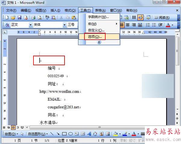 這樣剛才選中的文字我們就看不到了,還沒做完,單擊菜單欄--工具--選項。