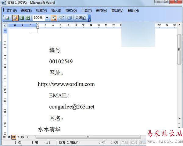 我們打印預覽看看,并沒有將這一行文字打印出來,于是,實現了本文開頭所示的目的。