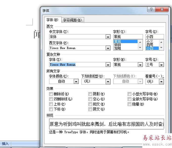 3、從下拉菜單中選擇字體選項(xiàng),彈出字體對(duì)話框窗口。