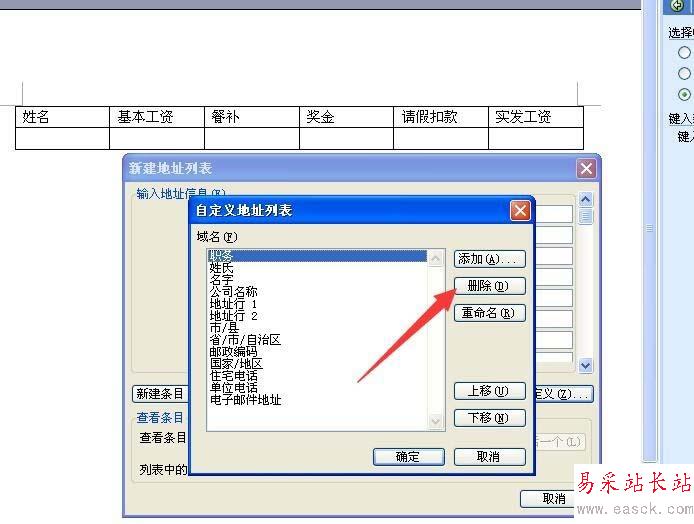 5、點擊添加,鍵入域名,即工資項目標題,錄入一個后確定,再添加下一個,一直把所有工資項目都錄完,確定。