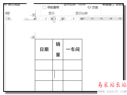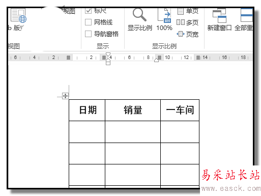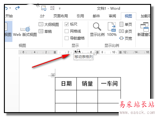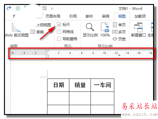 3、那么,如何在不影響相鄰列的情況下調整指定的列寬呢?操作如下:先調出標尺,點擊“視圖”,在下方的“標尺”這里打上對勾。可以看到,文檔上方顯示出標尺了。