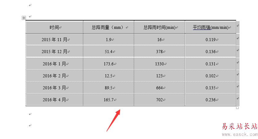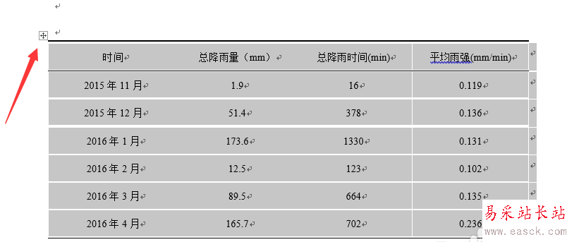 2、我們將鼠標移至表格左上角,可以看到如圖所示標志,點擊它選中該表格