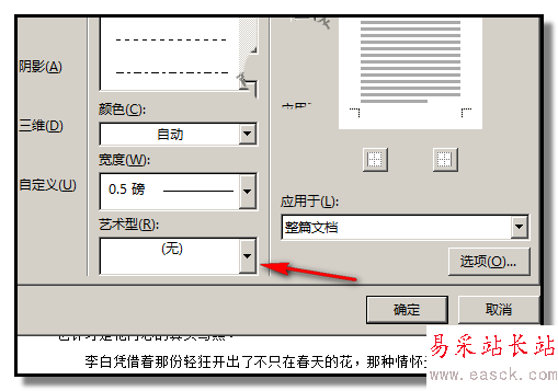 3、彈出“邊框和底紋”操作框;在框的“藝術型”這里的小三角點下。