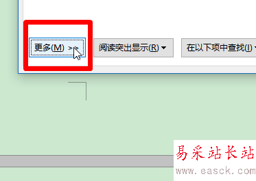 4、打開“查找和替換”對話框,在“查找”選項卡中單擊“更多”按鈕。