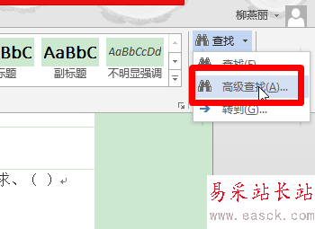 3、在彈出的下拉菜單中選擇“高級查找”命令。