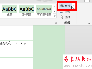 2、左鍵單擊“開始”選項卡的“編輯”組中的“查找”下拉按鈕。
