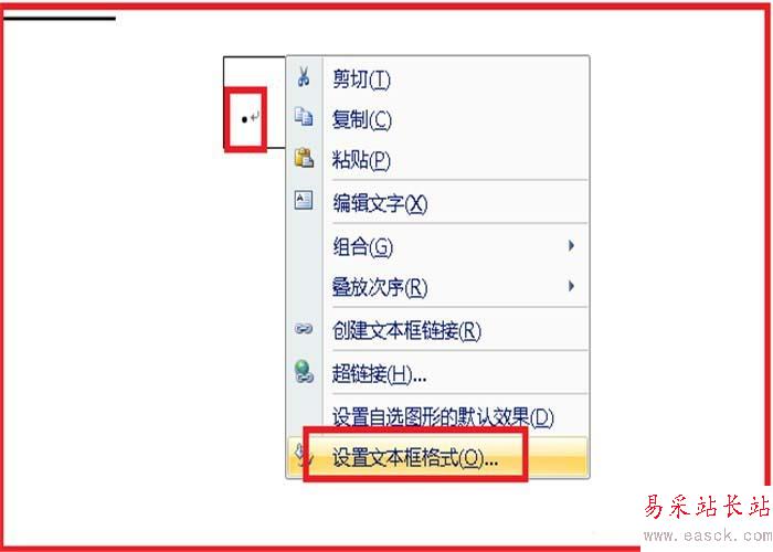 7、在文本框中輸入一個黑點,單擊右鍵,設置圖片格式,選擇無顏色填充。