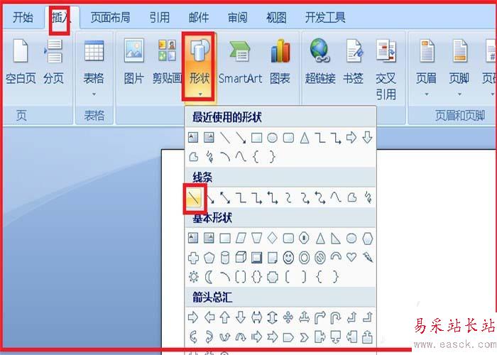 1、打開word空白文檔,找到插入,單擊一下,找到“形狀”,再單擊一下,選擇一條直線,單擊一下。