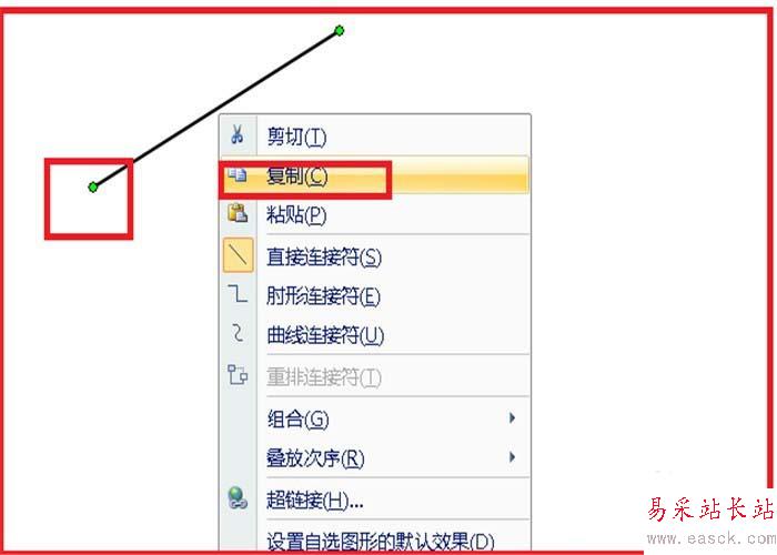 3、直線的粗細設置好了,單擊直線選中,單擊右鍵,單擊復制。