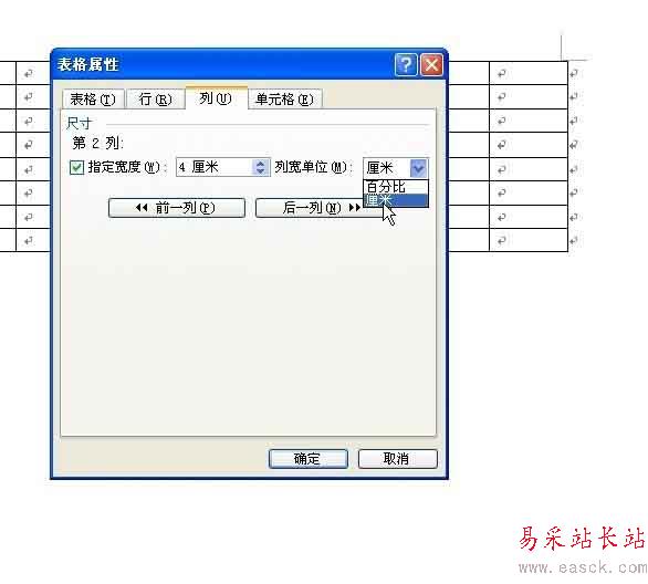 7、在【列寬單位】中選擇【厘米】選項