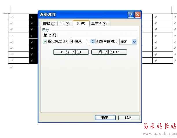 8、單擊【確定】按鈕,我們就完成了對表格列寬的設定。