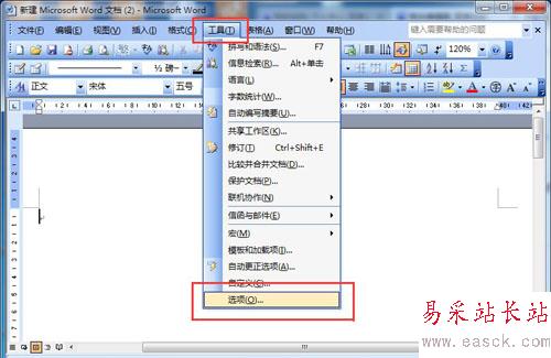 2、打開要配置的文檔,選擇點擊‘工具’,選擇“選項”如圖所示