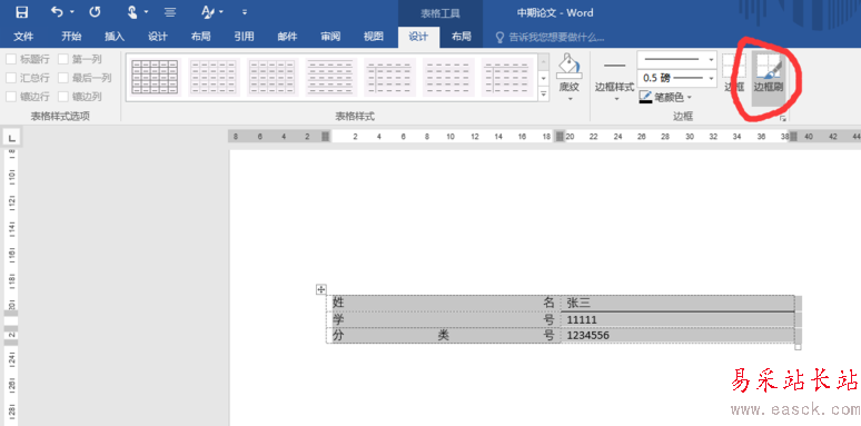 5、選中所有表格,點擊邊框刷,將所需要的三個底線點擊即可。