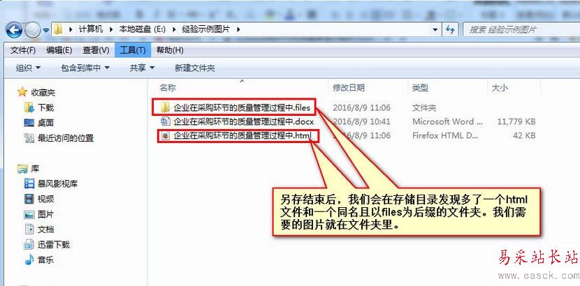 4、另存后,我們得到一個html文件和一個同名且以files結尾的文件夾。我們需要的圖片就在這個文件夾里。