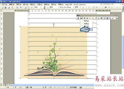 我們把背景圖片設置成襯于文字下方,由于是襯于下方,所以最好是白底的圖片。